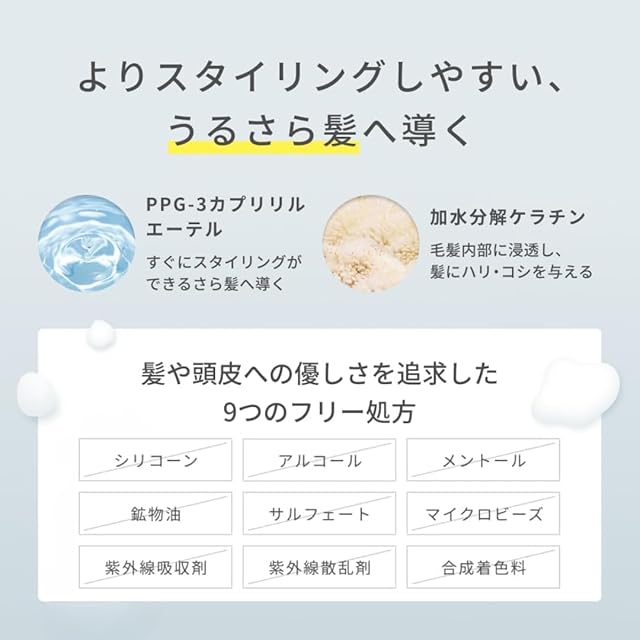 【「仕上がり」の気持ち良さ】洗い上がりの仕上がりにもポイントが。重さで“しっとりまとまる”のではなく、軽さもありながら“さらっと軽やかにまとまる”ことで、サロンで実感するような仕上がりに。