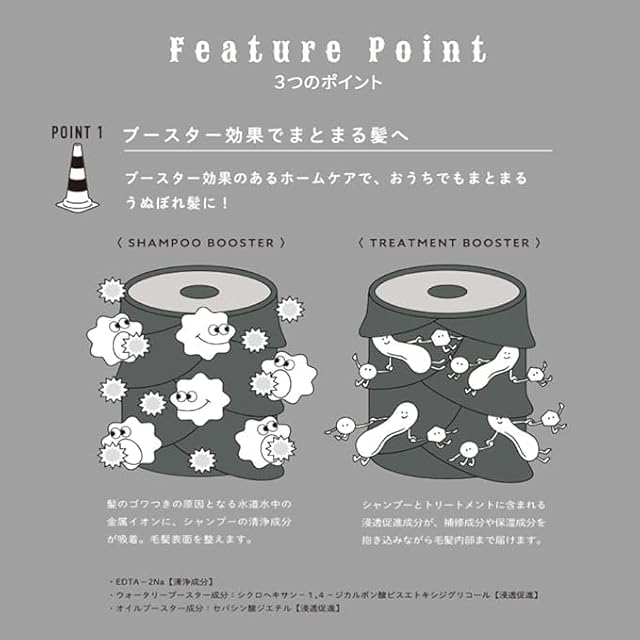 ブースター効果:髪表面をなめらかに整え、トリートメント成分を毛髪内部に高浸透させます。