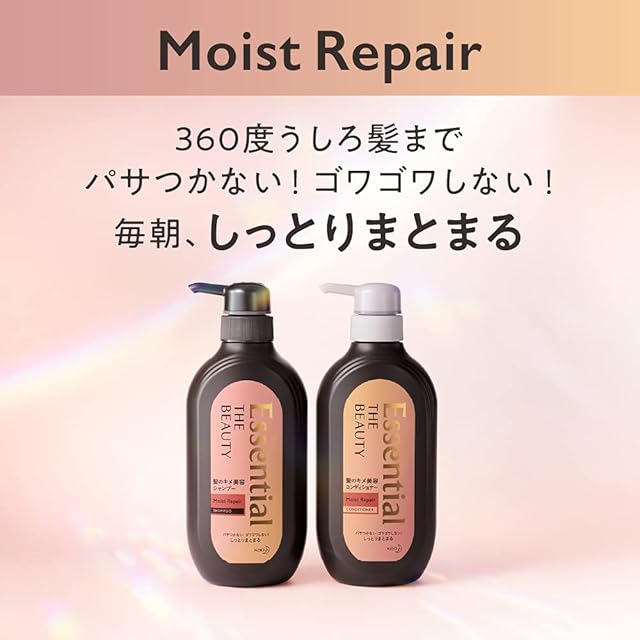 【Essential THE BEAUTY 髪のキメ美容シャンプー&コンディショナー モイストリペア】髪のパサつき、広がり、うねり、くせ毛がしっとりまとまる! 360度うしろ髪もパサつかず潤い保湿。寝癖もつきにくい、毎朝髪全体がしっとりまとまるシャンプー&コンディショナー