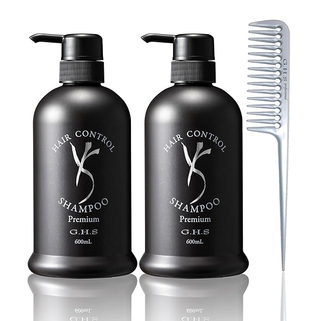 G.H.S(ジーエイチエス)ヘアーコントロールシャンプー プレミアム 600mL×2個+プラチナコームつき 【WEB限定品】 プロ仕様 ハリツヤ美髪へ導くコラーゲン泡で贅沢な洗い心地 世界的ヘア メイクアップアーティスト 七條慶紀 (日本製) 60175