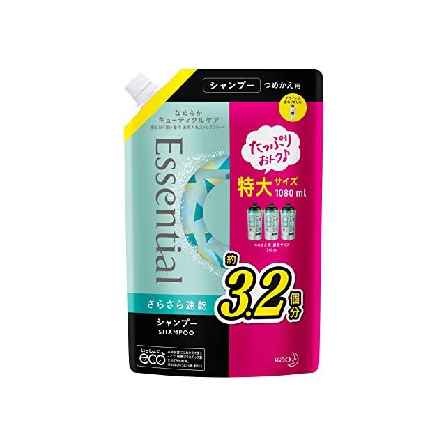 エッセンシャル 【大容量】 さらさら速乾 シャンプー つめかえ用 1080ml