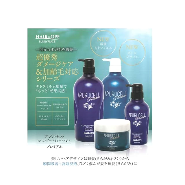 【ダメージケアで輝く髪へ】 サニープレイス アプルセル プレミアムは、ダメージ補修に特化したシャンプーです。 髪を優しく洗い上げ、まとまりやすい美しい仕上がりを実現します。