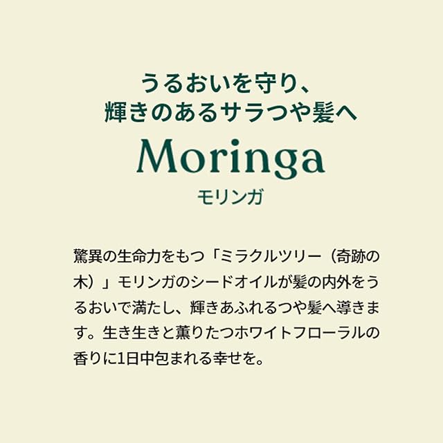 【乾燥によるパサつき、ごわつく髪を、サラサラでつやのある髪に】整髪成分モリンガシードエキスで頭皮や髪のコンディションを整え、毛髪補修成分ヴィーガンシルク プロテイン*1が髪の内側に素早く浸透し、ダメージを補修。