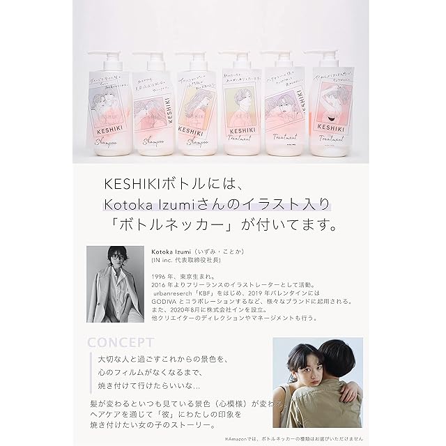 《 サロンヘアケアの入門版 》"KESHIKI"とは、サロン専用ヘアケアを まいにち 使用したいと願う、すべての女性のためのブランドです。サロン品質のケアをデイリーに使用する”きっかけ”にしていただくために、必要なモノ・コトだけを追求。サロンで仕上げたヘアスタイルを持続するために、髪のことを大切に想う、サロン品質のケアをもっと多くの方々に使用していきたいと、わたしたちは考えます。