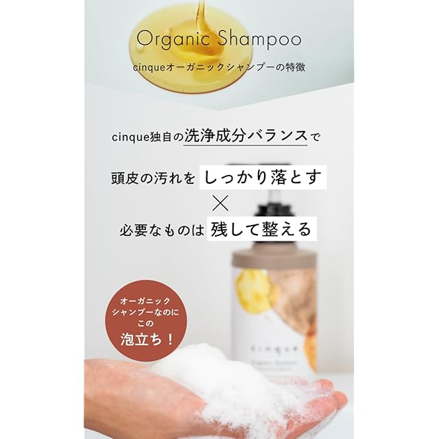 商品名:cinque (サンク) オーガニック シャンプー シャンプー 日本製 詰め替え用 280ml アミノ酸 低刺激 ノンシリコン 無添加 ヘアケア