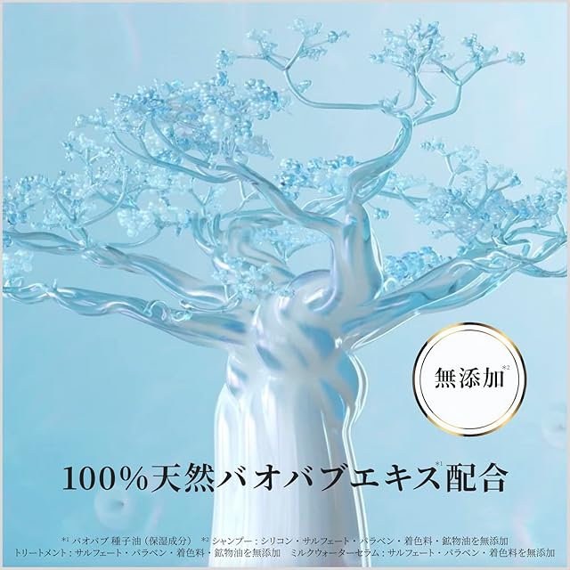 ミルクウォーターセラム:厳選保水処方でうるおいに満たされるxミルクが手のひらで水のようなテクスチャーに変化* バオバブ種子油(保湿成分)