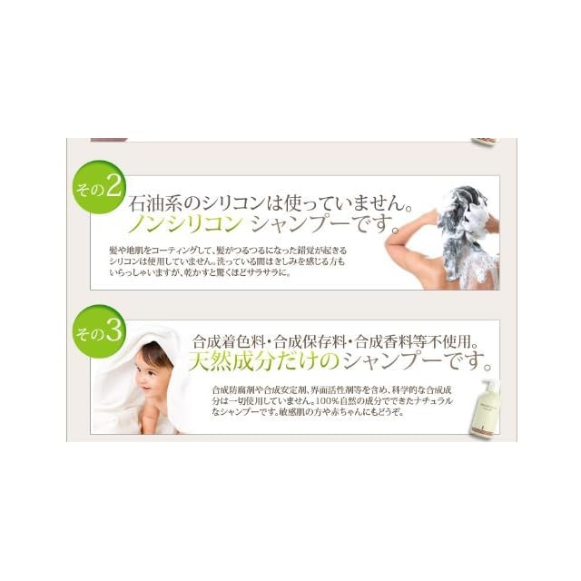 ノンシリコンで天然成分100%のシャンプーです。