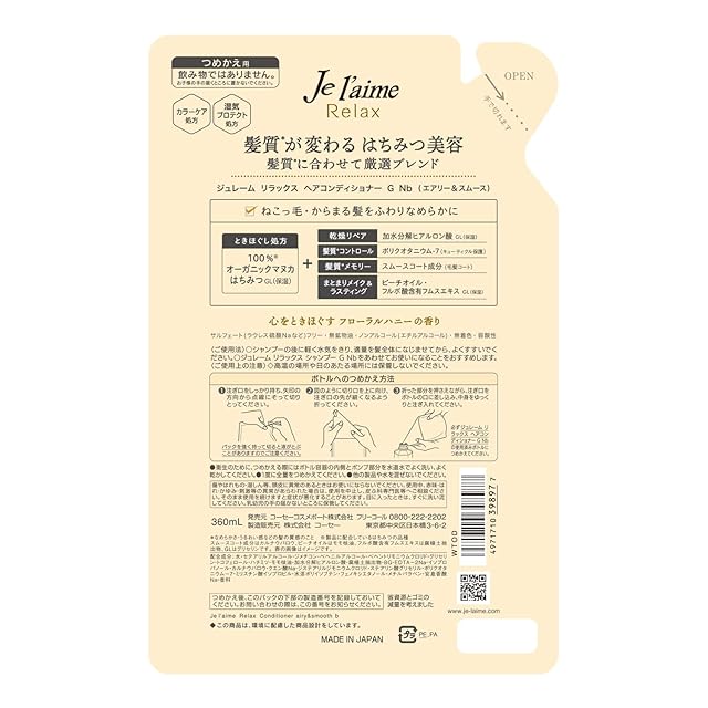 商品名:KOSE コーセー ジュレーム リラックス ヘアコンディショナー (エアリー&スムース) つめかえ 360mL ねこっ毛・からまる髪をふんわりなめらかに トリートメント フローラルハニーの香り 詰替え用 360ミリリットル (x 1)
