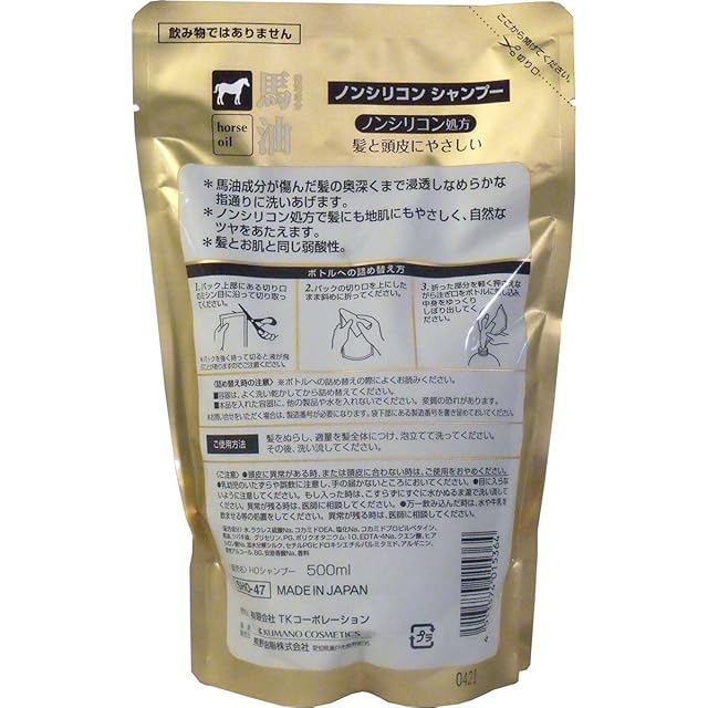 商品名:熊野油脂 馬油シャンプー&コンディショナーに詰替え用付きの4点セット 【日本製】