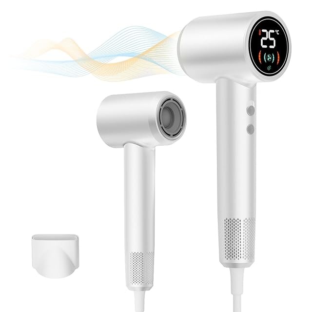 Ni Zmir ドライヤー【3億高濃度マイナスイオン 冷風熱風交互機能 ディスプレイ付き NTC温度制御システム】大風量 1分で速乾 高速BLDCモーター 5段階風温調整 1400W 恒温ヘアケア 冷風温風熱風 自動電源オフ機能 低騒音 マグネット式ノズル付属 マグネット式フィルター 家庭用 ヘアサロン 出張・旅行用 PSE認証済み 日本語取扱説明書付き