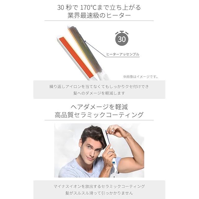 【ハイクオリティモデル】高品質で保温性の高いセラミックコーティングプレートを搭載し、ヘアダメージを軽減する機能を装備。朝の準備に時間をかけられない、髪のパサつきや乾燥を気にする方に最適なヘアアイロンです。