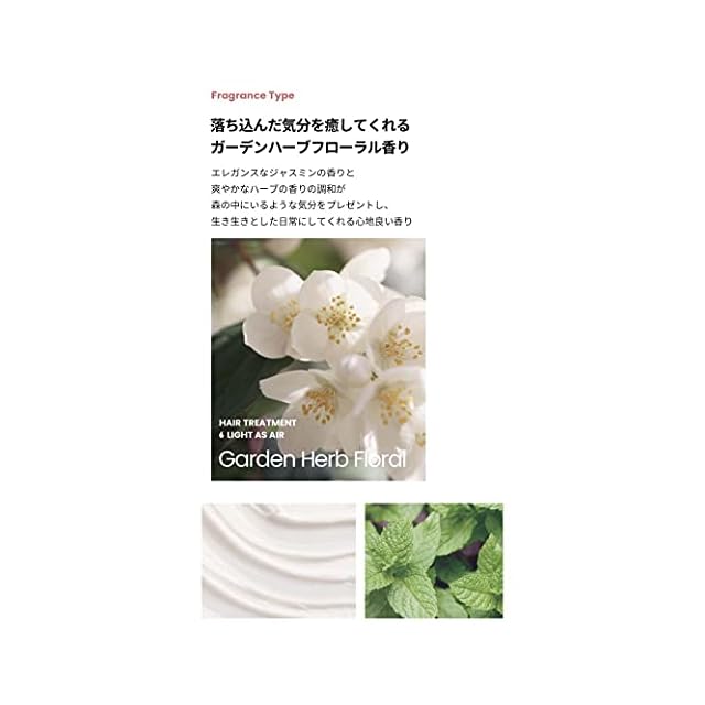 【商品詳細】商品:トリートメント / 内容量:180ml / 香り:ガーデンハーブフローラルの香り / 成分:水、グリセリン、ミリスチン酸イソプロピル、他 / 原産国:韓国