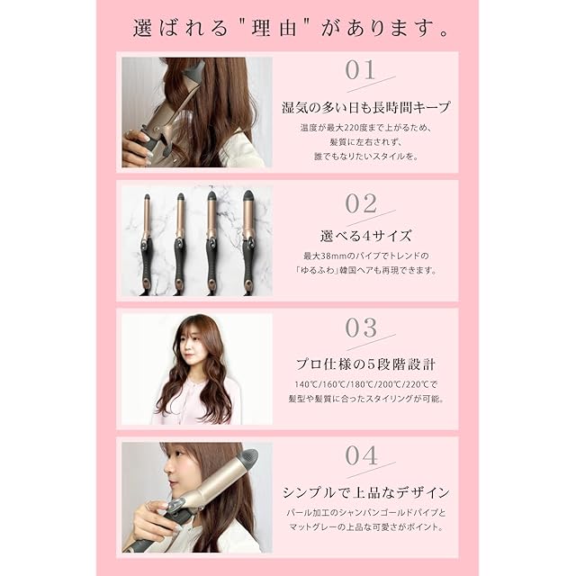 【湿気の多い日でも長時間キープ】220℃の高温でつくるカールヘアは髪の芯から温める為、カールがしっかり持続。
