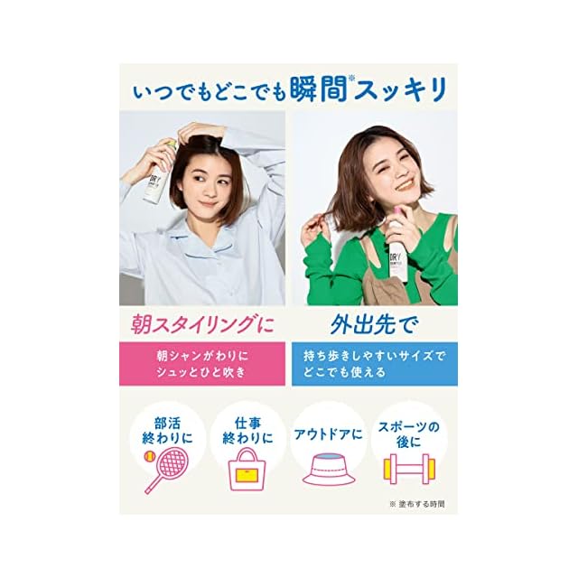 【3秒でふんわりスタイリング復活】汗をかいた時やベタつきが気になる時に。3秒で頭皮スッキリ。洗い立てのふんわりツヤ髪に。仕事終わりに / スポーツのあとに / アウトドアに