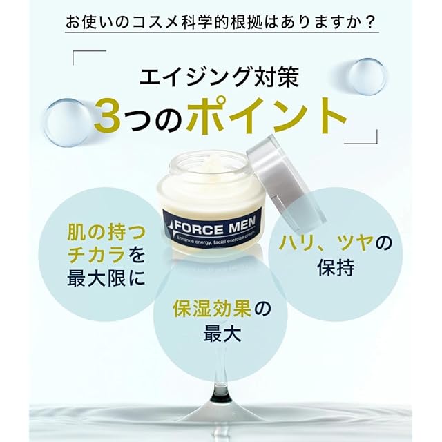 <p>フォースメンは、京都大学化学研究所の平竹平竹潤教授らが、大阪市立大学大学院生活化学研究科の小島明子准教授らとの共同研究により生まれたエイジングスキンケア成分ナールスゲンを配合した、全く新しいコンセプトに基づくメンズ オールインワン スキンケア クリームです。</p> <p>ナールスゲンは、疲れたお肌にアプローチ。ハリとツヤのある肌へ導くことが期待されています。</p> <p><b>美容効果が期待できる有効成分を12種類配合した、エイジングケア クリーム</b></p> <ul> <li>マンダリンオレンジ果皮エキス</li> <li>クダモノトケイソウ果実エキス</li> <li>ヒアルロン酸Na</li> <li>イザヨイバラエキス</li> <li>ソメイヨシノ葉エキス</li> <li>ホホバ種子油</li> <li>オレンジラフィー油</li> <li>オリーブ油</li> <li>スクワラン</li> <li>マカダミアナッツ油</li> <li>ローズヒップ油</li> <li>リン脂質セラミド</li> </ul> <p><b>ご使用方法</b></p> <p>洗顔後のお肌に適量を塗布してください。</p>