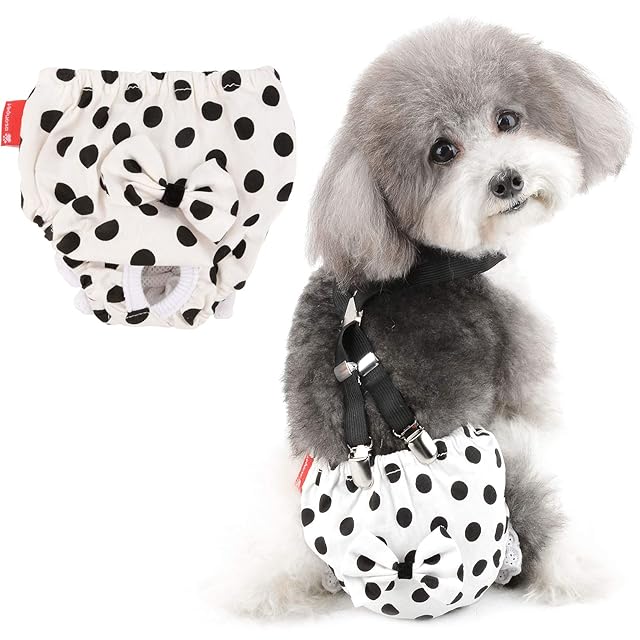 ZUNEA 犬用 オムツパンツ 女の子 おむつ 小型犬 生理 サニタリーパンツ サスペンダー付き 可愛い 蝶結び付け 水玉柄 月経 生理マナーパンツ メス 柔らかい 発情期用 洗える ペットドッグウェア ホワイト L